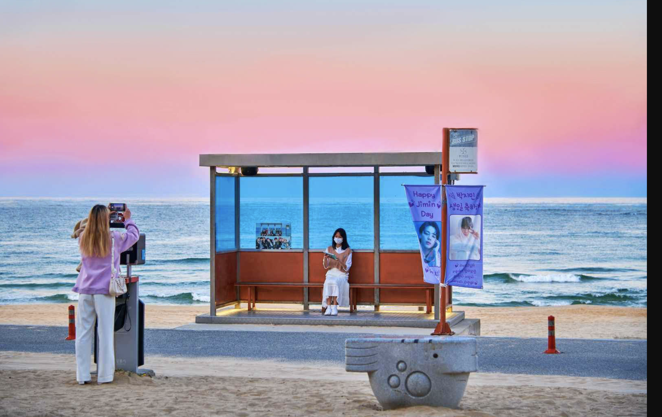 - Berfoto di BTS Bus Stop, lokasi syuting MV “Spring Day” yang menjadi impian para ARMY.