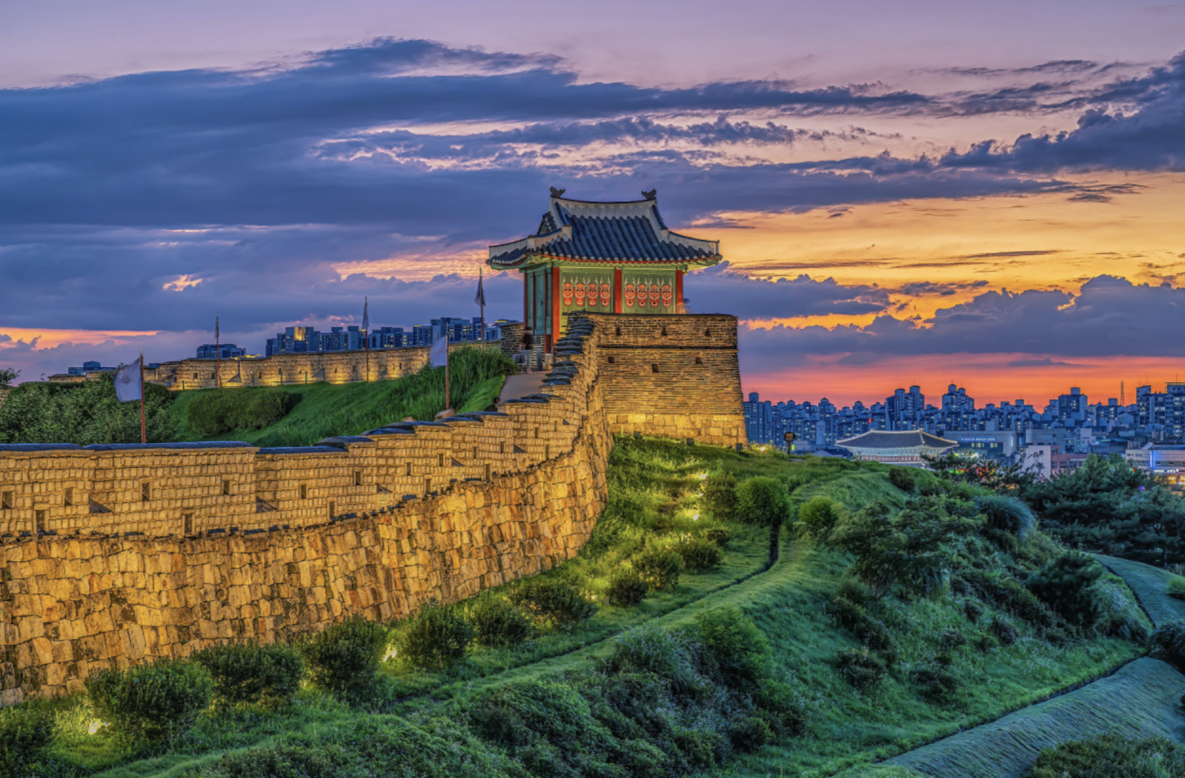 - Nikmati pemandangan kota dari atas benteng saat berjalan di sepanjang tembok Suwon Hwaseong Fortress.